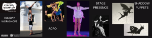 From storytelling and creativity to confidence and acrobatic skill, there’s something for everyone. Create your own mini theatre in the Shadow Puppetry workshop, build Stage Presence and Character Development through fun, fast-paced improv, or get moving with Acro – developing balance, trust and dynamic partner skills.